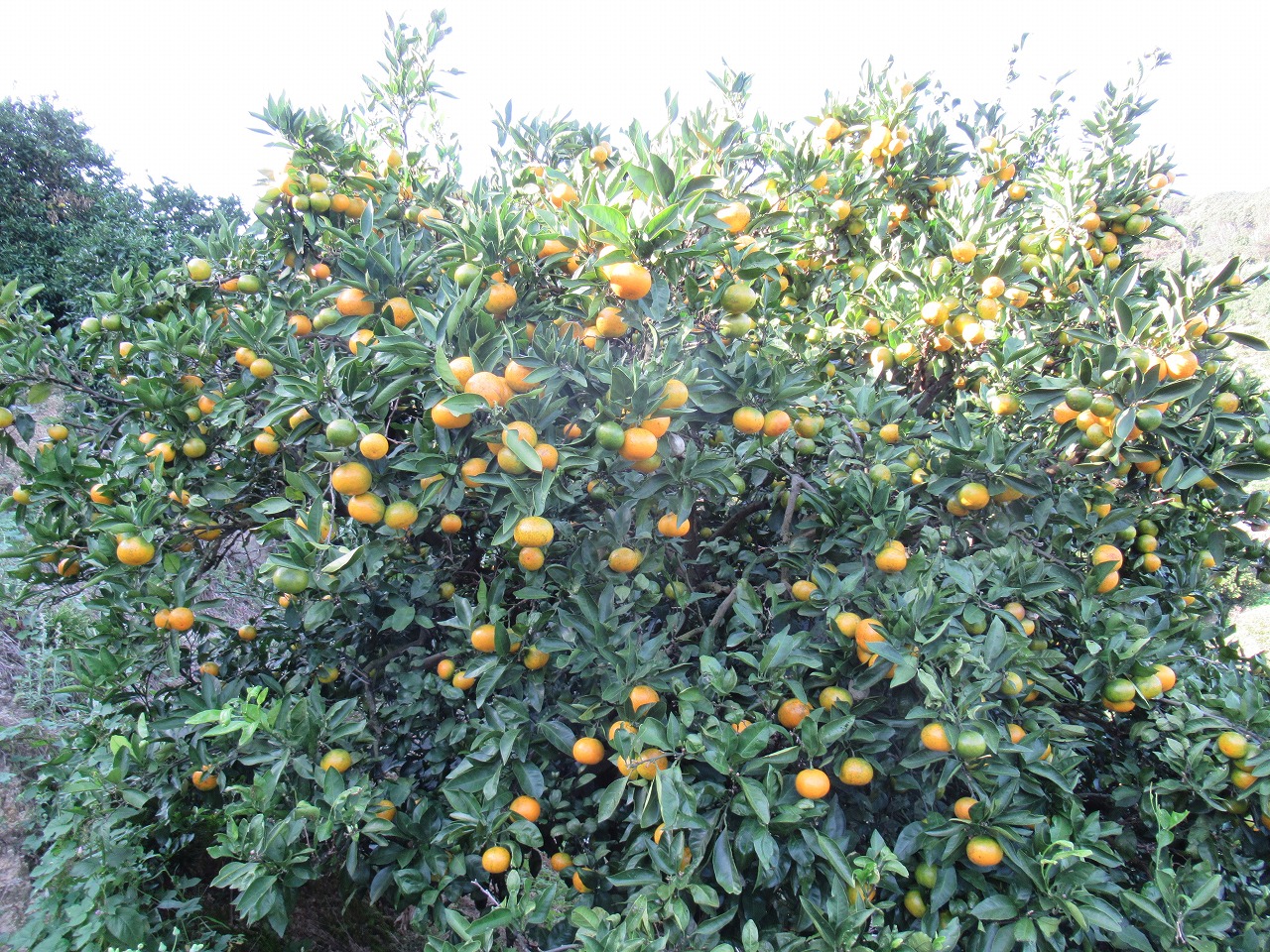 ゆら早生は色付くのが早いので、一番先に出荷することになる。小玉が多くてね。摘果して粒の大きさを揃えないから、小っちゃいものばかりよ。近所の百姓からも、ちゃんと作ればお金になるのに、と言われている。私にも分かっているけど、どうも苦手なんだろう。みかん作りには女手が欠かせないという。そのとおりだよ。